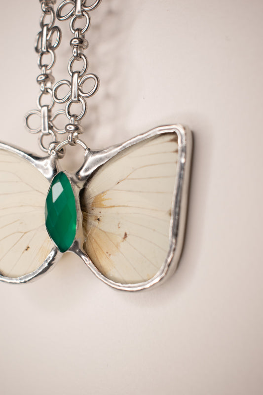 Cabbage White Butterfly w/ Green Onyx Pendant