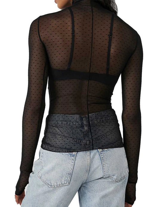 Basic Sheer Mesh Top Long-Sleeves Shirt