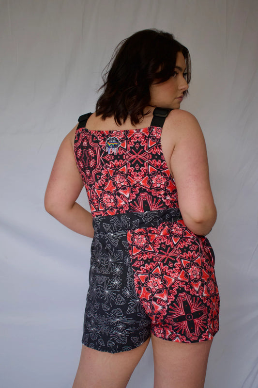 Mushroom Overlock Patchwork Overalls