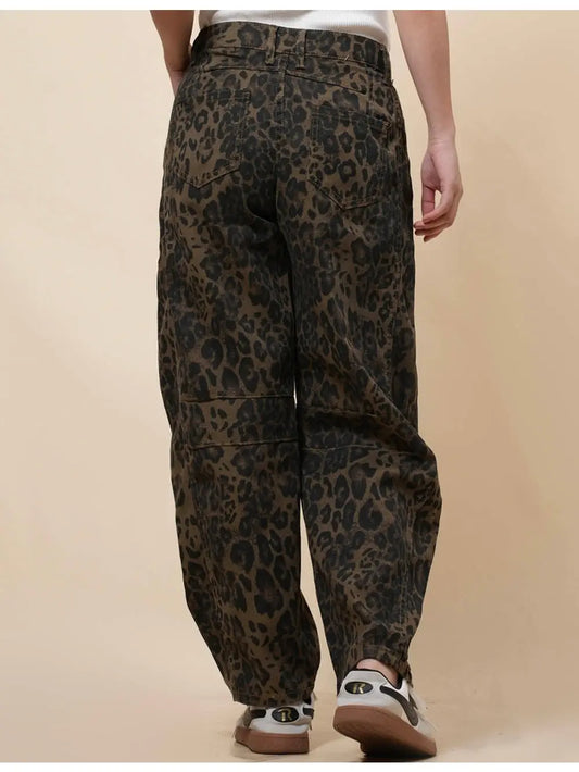 Leopard Print Barrel Jeans