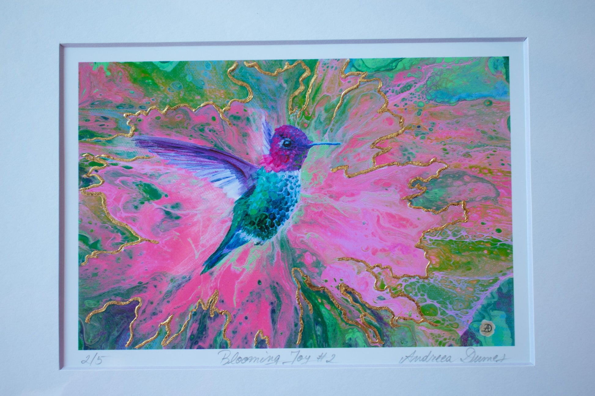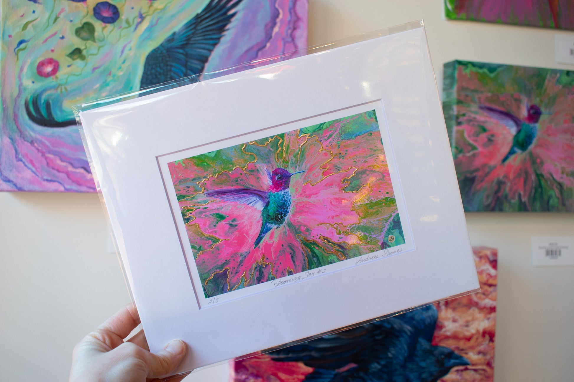 Discover the stunning beauty of this 8x10 Blooming Joy #2 print, created by renowned Portsmouth NH artist, Andreea Dumez. Admire the intricate details of the beautiful bluebird, hand-painted with expertise and care. Bring a touch of nature's majesty into your home with this breathtaking piece.