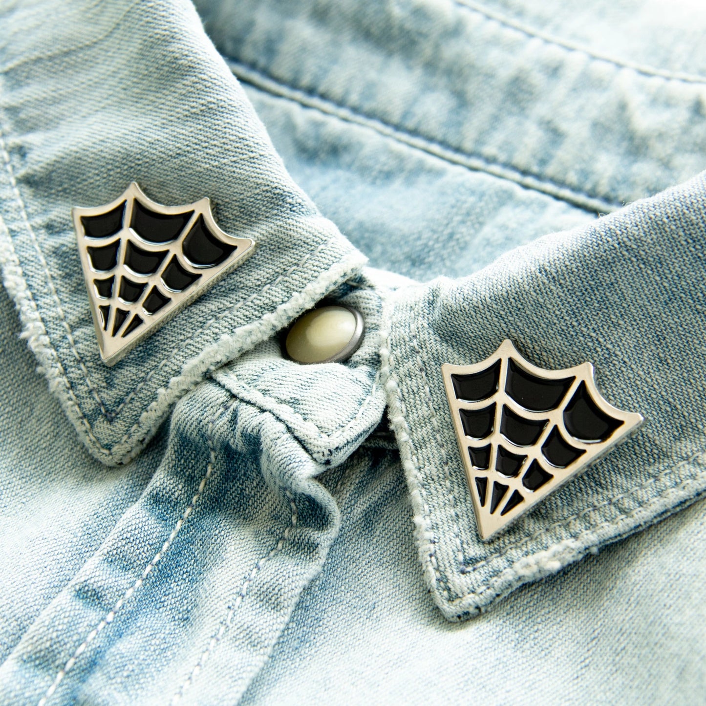 This unique accessory adds a hint of spooky style to any outfit. Features a pair of spiderwebs shaped to fit collar points.