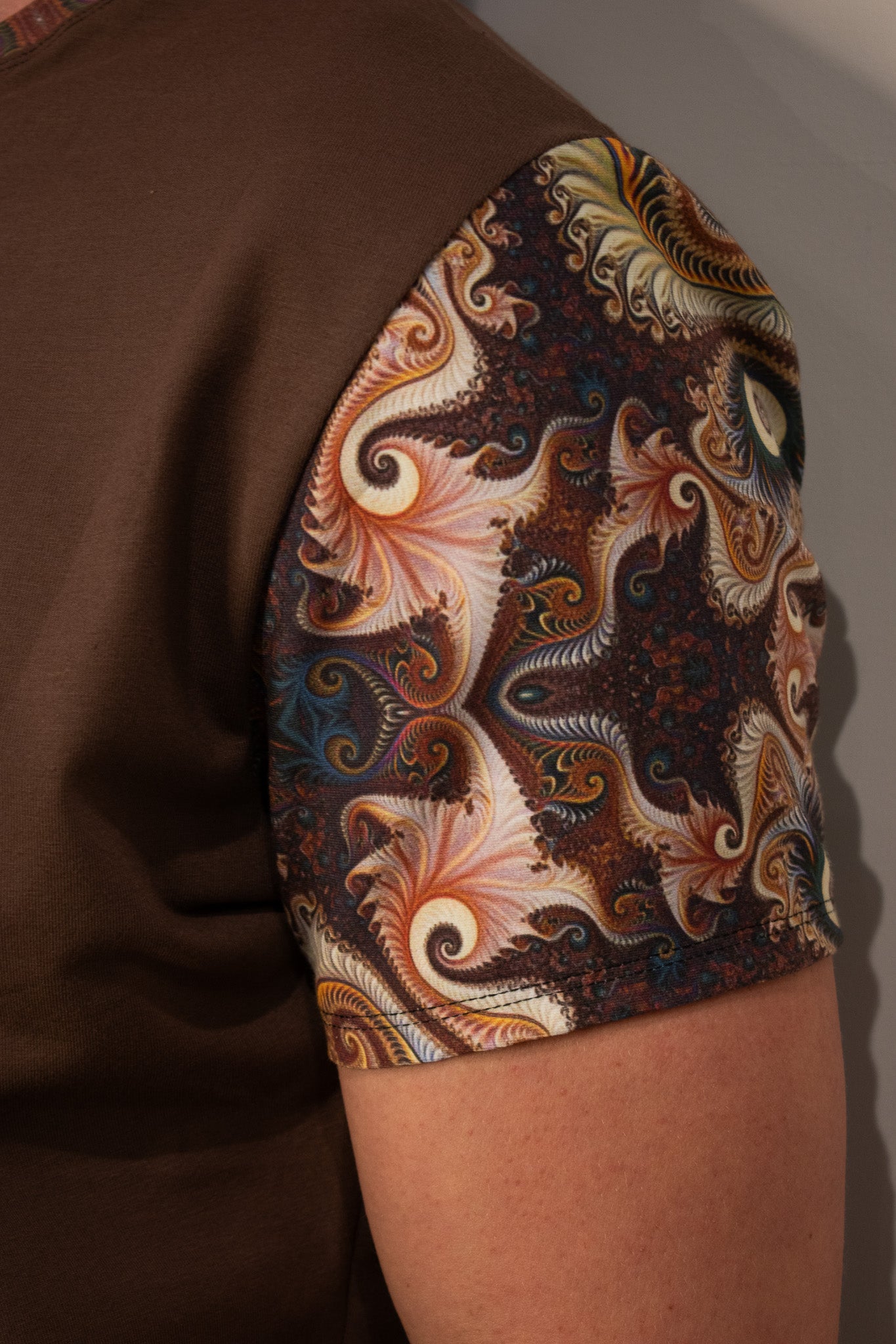 Expertly handcrafted by artist Allison Johnson in the USA, the Light & Sound Stripe Tee showcases a unique blend of black bamboo and eco printed cotton. Sustainable materials and intricate design make this shrug a stylish and environmentally-friendly addition to any wardrobe.