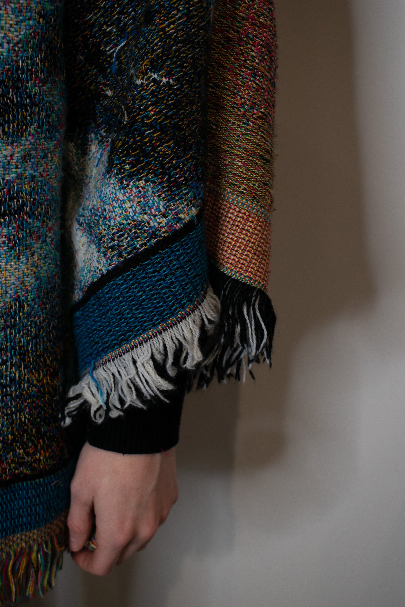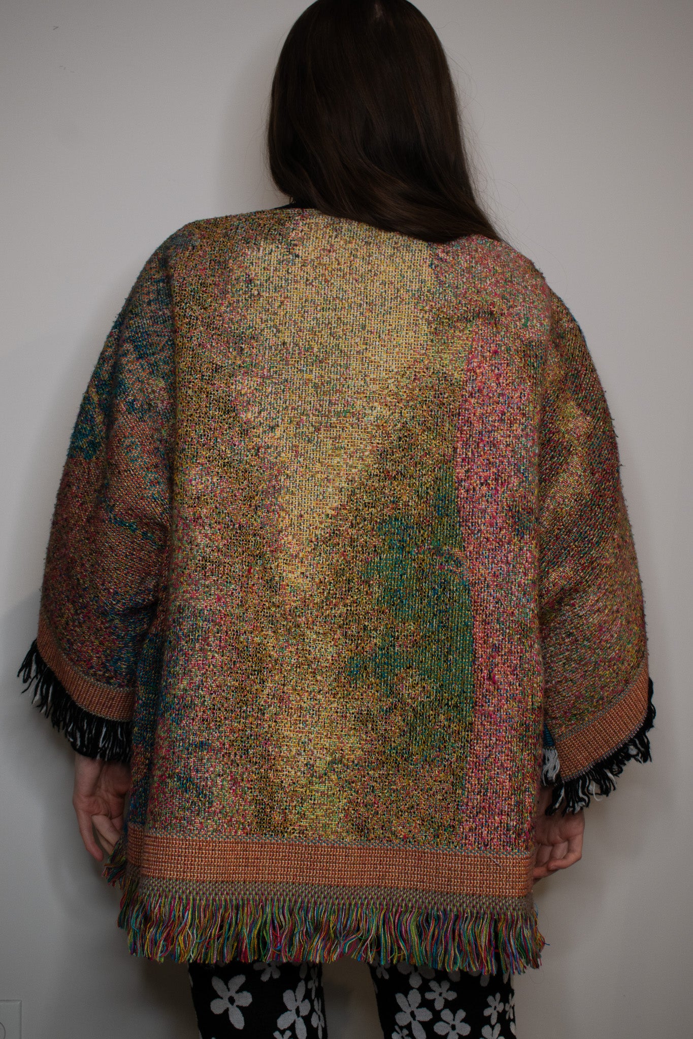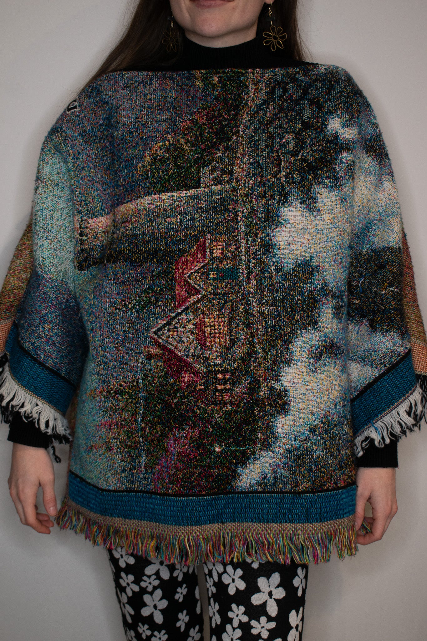 As an expertly crafted product by artist Molly, the Good Planet Swanket boasts hand-made qualities and is created from upcycled woven blankets. With its unique and sustainable design, this swanket not only provides a cozy and stylish top, but also promotes responsible and eco-friendly fashion.