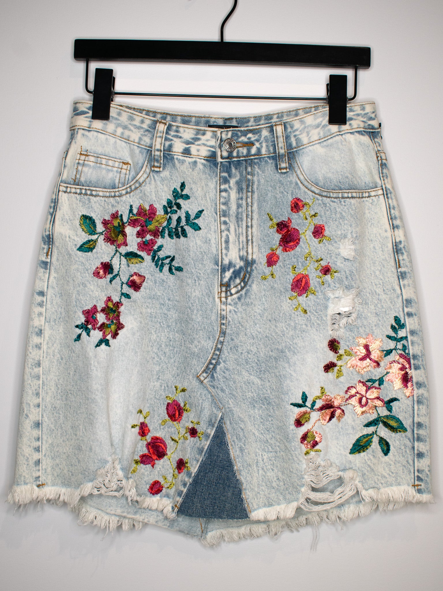 Light Wash Embroidered Skirt | Small