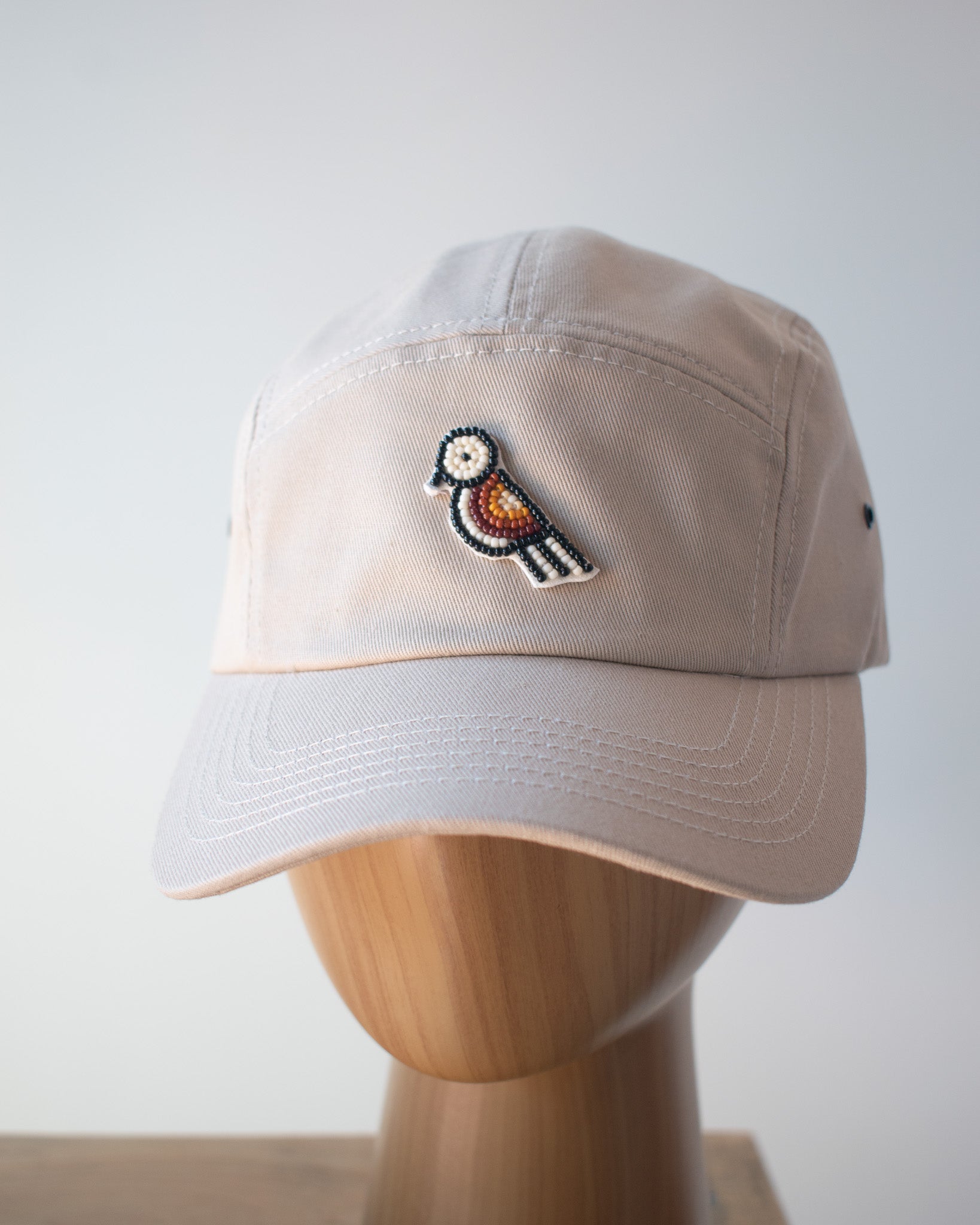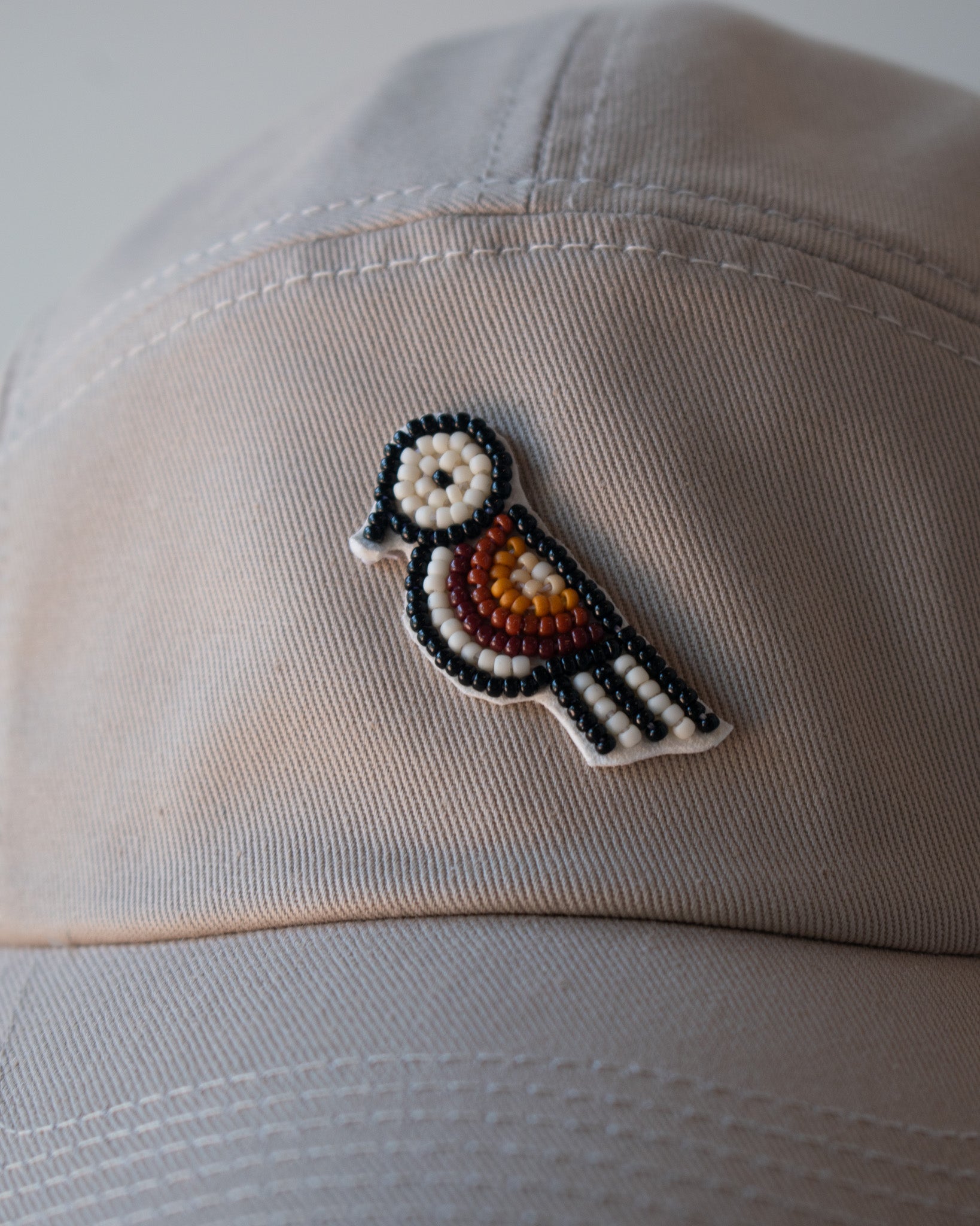 Introducing the Little Bird 5 Panel, a five-panel hat with a beautiful hand-beaded bird patch. This accessory combines style and craftsmanship, making it a unique addition to any wardrobe. Elevate your look with this beautiful piece.