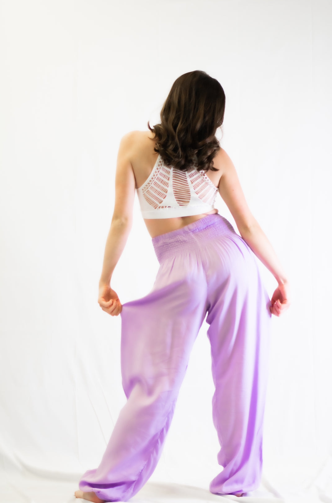 Relax in style in these cute and comfy lounge pants! Wear them to yoga, the beach, or a night out! Incredibly soft and lightweight, an elastic waist and cinched leg are perfect for relaxation and movement.